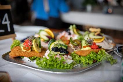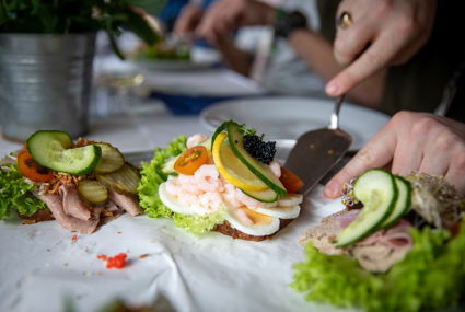På den stemningsfulde Restaurant Himmelblå er der lagt op til ægte hygge og lækker madoplevelse. Til frokost serverer vi klassisk højtbelagt smørrebrød, perfekt akkompagneret af en “sidevogn” og øl i rigelige mængder – lige til at nyde i de afslappede omgivelser.