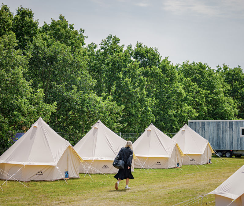 På Camp Karma kan du skræddersy din festivaloplevelse præcis efter dine behov. Der er en masse forskelligartede boformer, såsom Glamping-tipi, Caravan-plads eller eget telt.